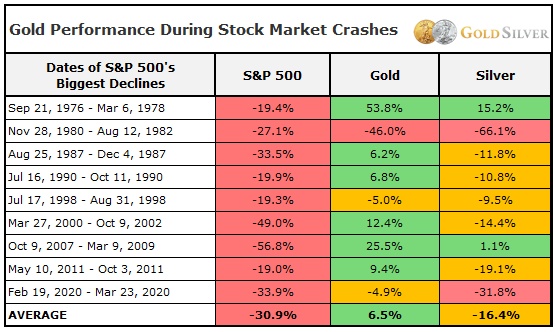 另外,有数据显示,当股市表现不佳时,黄金多数情况下也表现良好。