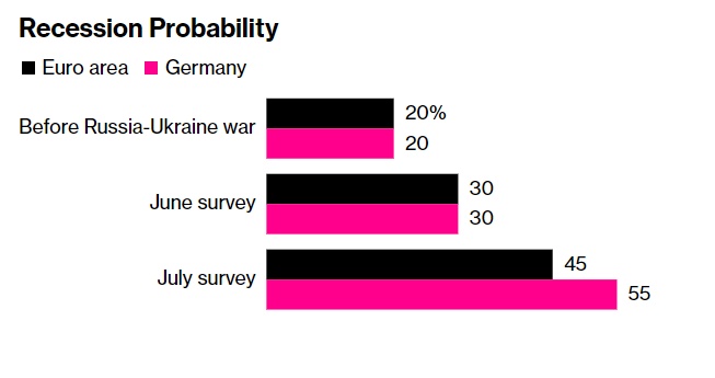 一些经济学家认为,即使俄罗斯不停止能源供应,欧洲的经济衰退也是不可避免的,通胀也可能保持高位。这使得欧洲央行的任务更加艰巨,而该行仅刚刚开始十多年来的首次加息。