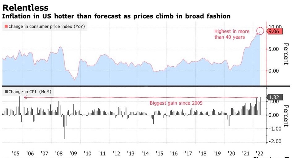此前,素来以鸽派著称的亚特兰大联储主席博斯蒂克表示,在数据显示美国6月份CPI再次加速至40年来的新高后,当被问及这是否包括加息整整100个基点时,博斯蒂克回答称,在通胀面前,“这将意味着一切皆有可能。”这番言论加剧了市场对美联储更有可能在本月晚些时候开会时加息100个基点的押注。根据利率期货市场的定价,越来越多投资者押注美联储将在7月底的会议上历史性地加息100个基点。