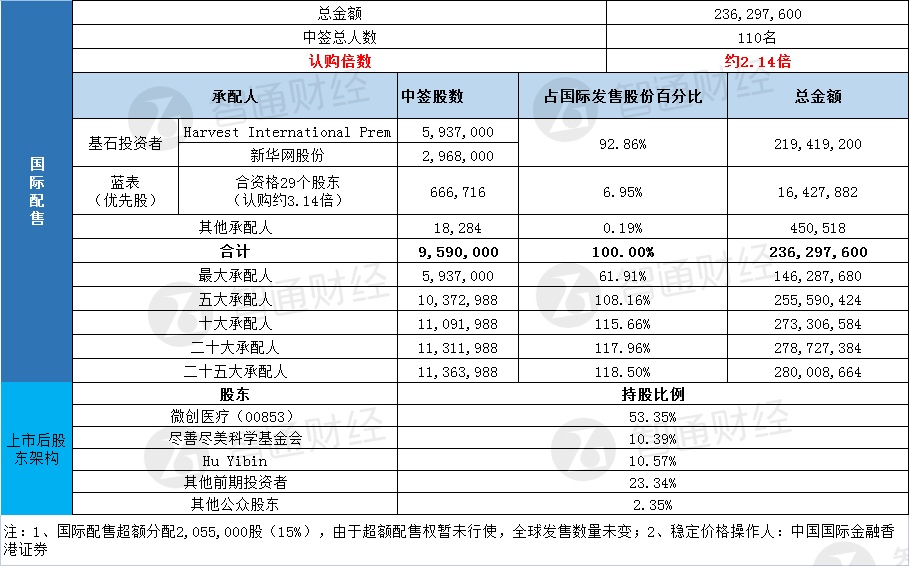 国际配售申购人数未披露,认购倍数约2.14倍。