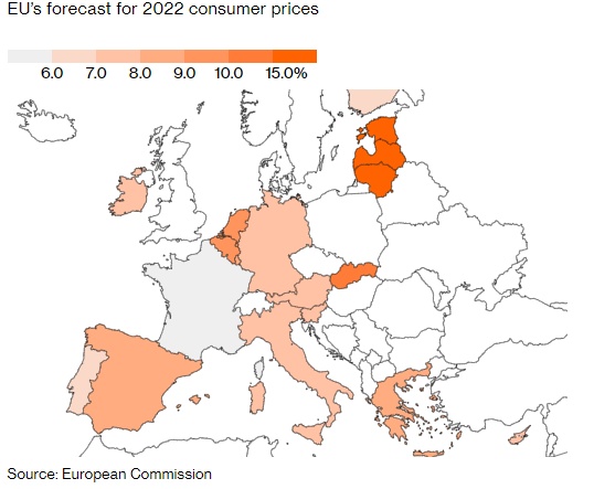 欧盟委员会预测欧洲的通胀将在今年下半年达到峰值,但会持续更长时间。