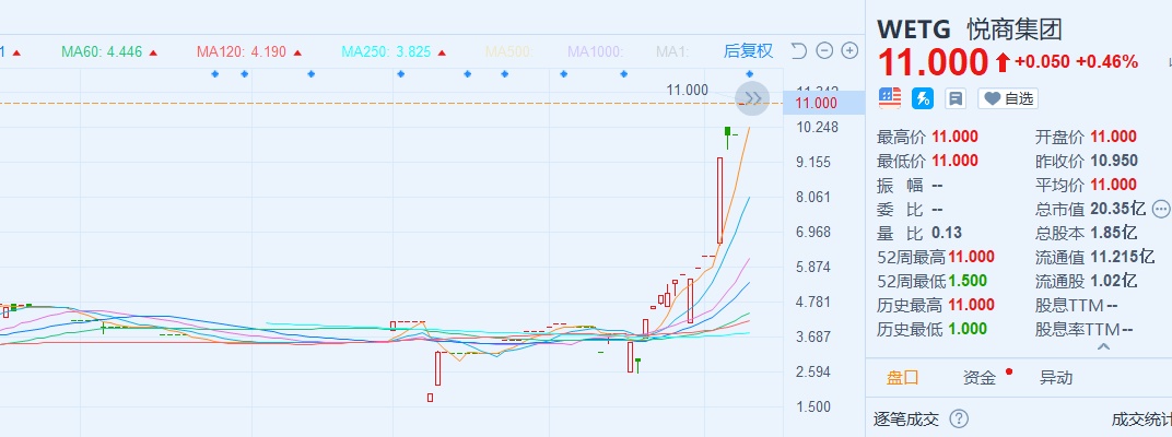 自悦商集团宣布转板纳斯达克以来,公司股价持续大涨,从6月份低点的2.61美元一路上涨至11美元,公司总市值突破20亿美元大关,这代表着资本市场对悦商集团未来发展的看好。