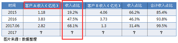 客户A的收入增速很快,2016年同比增长225%,2017年上半年收入占比2016年度73.6%,假设下半年收入与上半年持平,2017年度该客户收入同比增长将达47.3%。而客户B的收入就呈下滑趋势,2016年下滑8%,2017年上半年收入占比2016年度35%,2017年度该客户B收入可能下滑30%左右,但具体的情况仍需市场的确认。