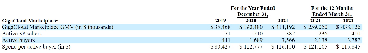 在活跃买家增长的同时,活跃买家的支出也在不断提升,2019至2021年分别为8.04万美元、11.23万美元、11.6万美元。“量价齐升”下,大健云仓交易平台上的GMV实现了241.61%的复合增长。