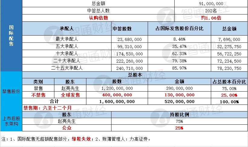 国际配售申购人数未披露,认购倍数约1.06倍。