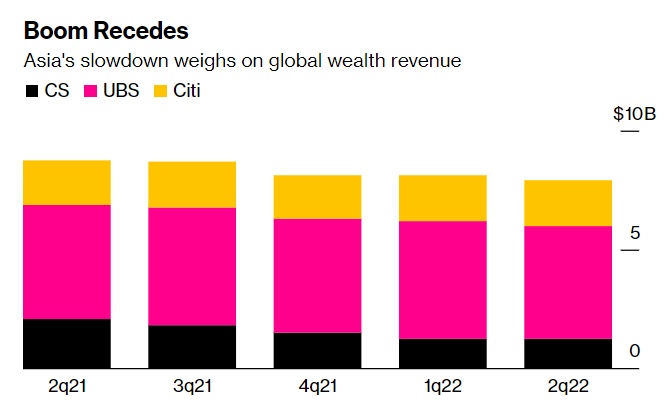 智通财经APP获悉,亚洲客户交易活动的不景气,有可能使世界上最大的财富管理公司收入减缓。瑞银(UBS.US)和花旗(C.US)等银行上半年在该地区的财富收入可能下降了两位数。瑞信上个月警告,第二季度的业绩受到客户回撤的影响,该公司预计也将出现类似的下降。