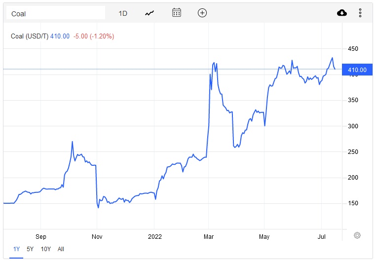 Whitehaven Coal表示,二季度全球供应紧张和强劲需求推动亚洲基准纽卡斯尔港动力煤创下每吨377美元的季度纪录。截至发稿,纽卡斯尔动力煤期货(Newcastle Coal Futures)为每吨410美元。