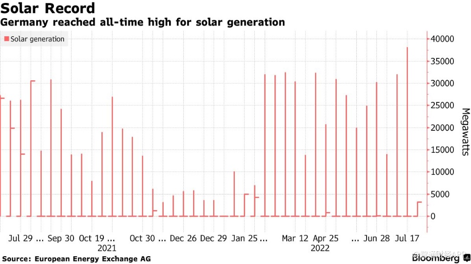 德国太阳能发电量周日创下纪录,而随着热浪席卷欧洲,这一纪录将于周二再次被打破。