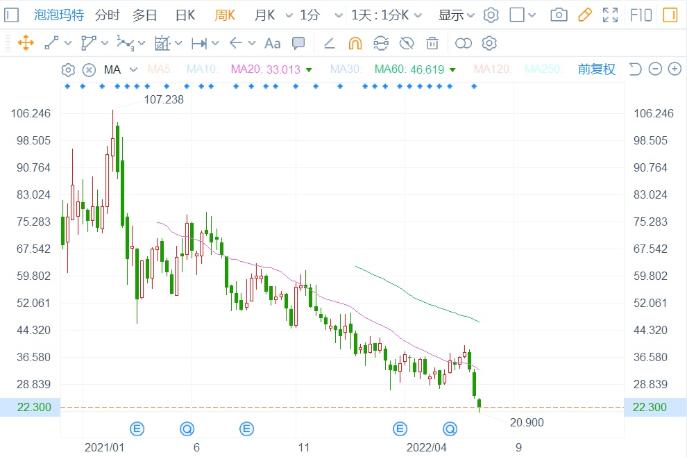 需要指出的是,泡泡玛特的股价下滑也并非是“一日之寒”——自7月4日以来,其股价连续下跌,累跌超41%。而拉长时间线来看,其目前的股价已经较最高价107.238港元,跌去了近80%。