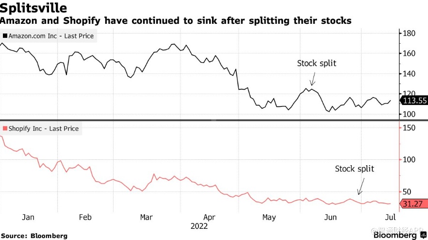 这些拆股的公司宣称,此举是为了让散户投资者更容易购买到它们的股票,而这一点已经实现了。由于对美联储加息和经济增长降温的广泛担忧,拆股对提振股价的作用甚微。