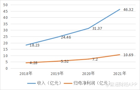 据财报披露,2021年凯莱英营业收入为46.39亿元,同比增长47.28%;归母净利润为10.69亿元,同比增长48.08%。基本每股收益为4.40元。自2016年上市以来,2021年是公司收入增长最快的一年。