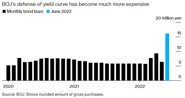 在全球各大经济体央行中,只有日本央行试图将利率维持在接近零的水平,同时限制债券收益率。黑田东彦认为,日本经济规模仍低于疫情前水平,因此刺激措施是必要的。在交易员押注日元跌至24年低点可能迫使日本央行不得不放弃刺激政策的情况下,日本央行上个月则斥资1150亿美元捍卫日债收益率。