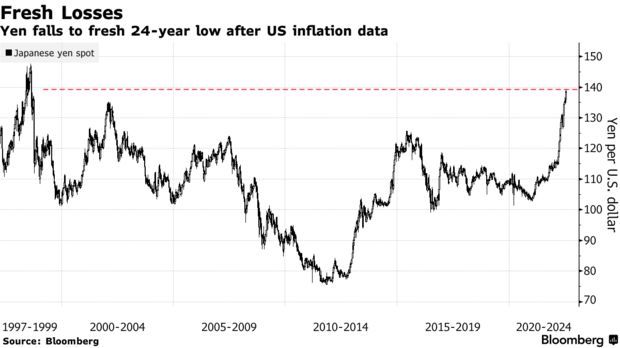 法国巴黎银行经济学家预计,如果美元兑日元汇率超过140,日本央行的关键通胀指标的同比涨幅可能会从2.1%升至3%,这将是1991年以来的最高水平,而3.5%的通胀水平将促使日本央行调整政策。