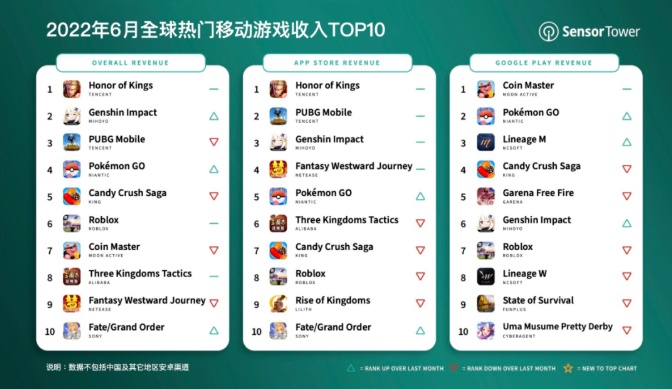 全球热门移动游戏收入TOP10完整榜单请见上文图表。
