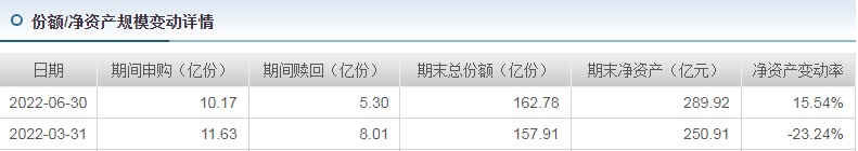 该基金二季度份额出现净增长,由一季末的157.91亿份增长至162.78亿份。
