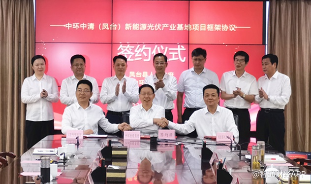 该项目合作三方主体于淮南市政府A座6楼1号会议室进行签约仪式。在淮南市委副书记、代市长张志强,淮南市委常委、常务副市长孙良鸿,淮南市二级巡视员、市政府办公室党组书记程小平,凤台县委书记刘居胜,凤台县委副书记、县长熊寿宏,中环控股集团董事局主席余竹云,中环控股集团非执行董事朱玉娟的共同见证下,凤台县委常委、常务副县长陈宏伟、中环控股集团执行董事李梦琳和江苏中清光伏科技有限公司总裁赵治国代表三方主体签约。