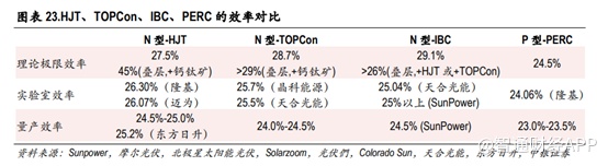 除此之外,目前主导的P型PERC电池量产转换效率普遍达到23.0%-23.5%且已接近理论极限24.5%。
