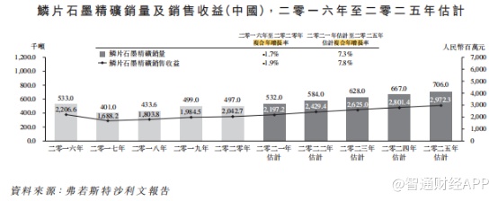 近年来,这两种石墨产品在我国市场销量持续高速增长。根据弗若斯特沙利文报告显示,2016-2020年间,中国球形石墨销量复合年增长率达到21.7%,销售收益复合年增长率为16.8%;鳞片石墨精矿销量复合年增长率则预计于2021-2025年间达到7.3%,销售收益复合年增长率有望达到7.8%。