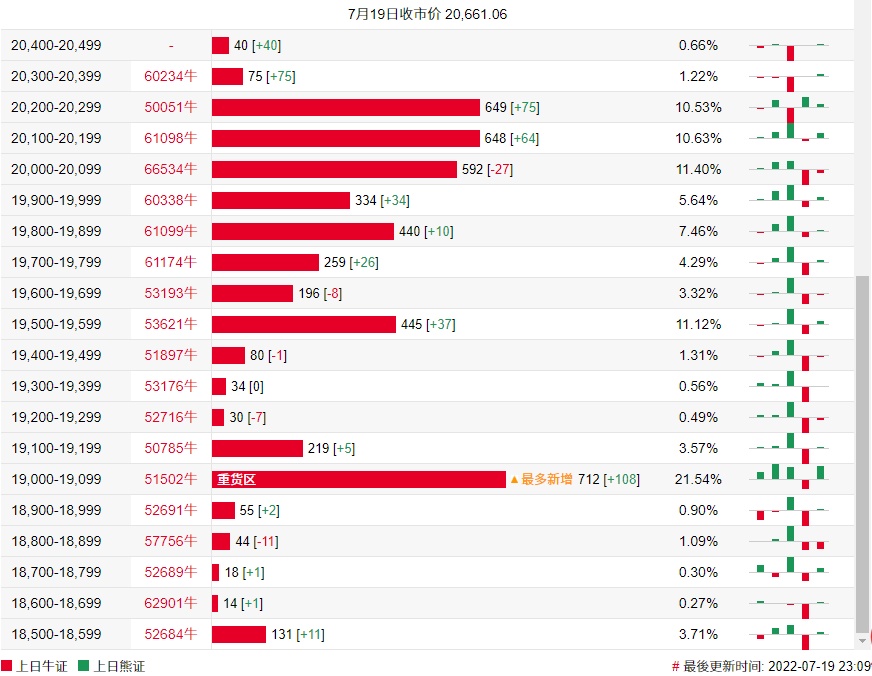 牛证街货重货区在19000-19099区间,该区间最新牛证数量为712张,较上一交易日增加108张;最多新增在同一区间。