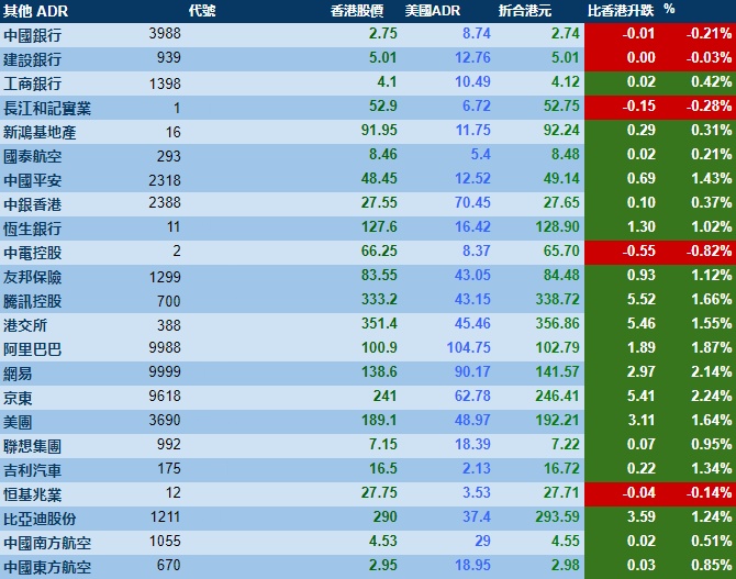 智通财经APP获悉,周二,美股三大指数集体大涨,港股ADR指数上涨,按比例计算,收报20888点,较香港收市涨227.16点或1.09%。
