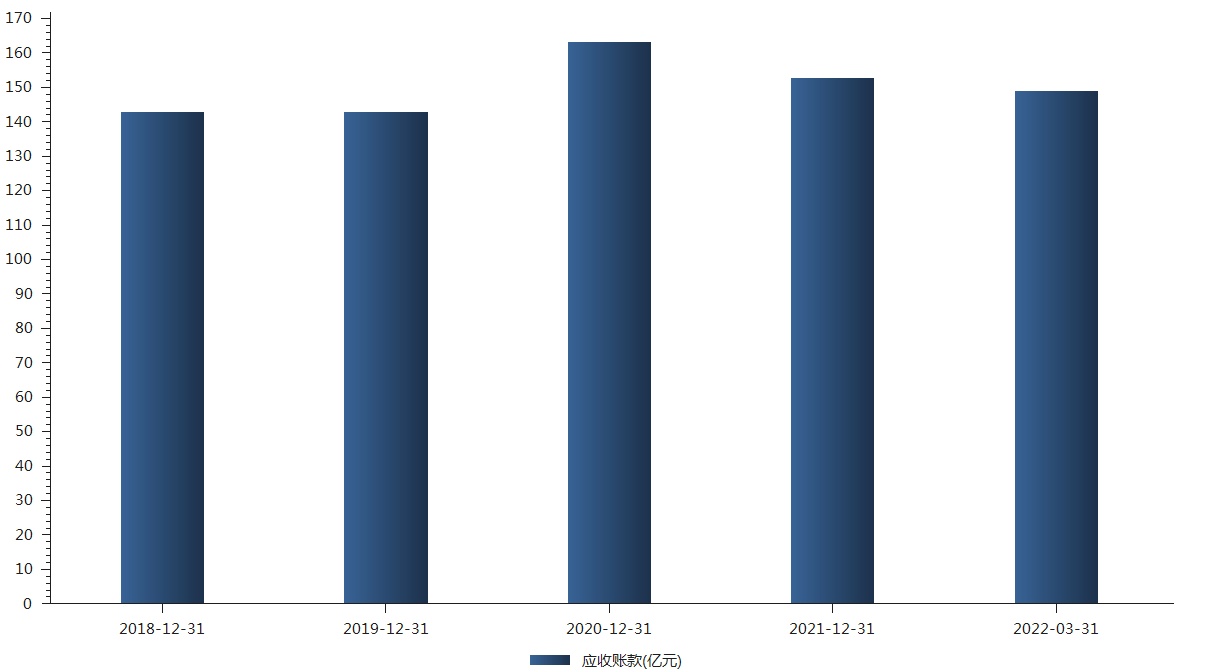 据相关财务数据显示,2017年至2021年,中铝国际包括应收账款、应收票据、预付款项、其他应收这四大应收款项的账面价值分别为160.03亿元、181.85亿元、175.81亿元、187.17亿元、180.12亿元。其中,光是应收账款这一项就是突破百亿规模,期内分别为117.97亿元、143.08亿元、142.84亿元、163.12亿元、152.85亿元。