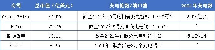 目前,美股市场已经汇聚多家全球领先的新能源充电服务企业,其中比较有代表性的是:ChargePoint(CHPT.US)、Blink(BLNK.US)、EVgo(EVGO.US)和中国的能链智电(NAAS.US)。