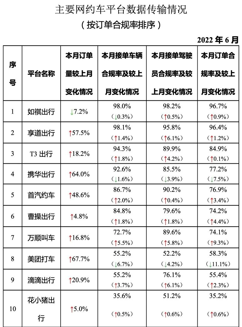 网约车监管信息交互平台发布6月份网约车行业运行基本情况