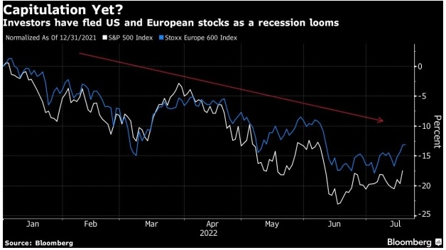 Bernstein的观点与美银7月全球基金经理调查结果形成鲜明对比,该调查显示,在投资者对股票的配置水平跌至2008年10月以来的最低点之后,其实已经到达“完全投降”水平,而风险资产敞口则降至全球金融危机以来前所未见的水平。