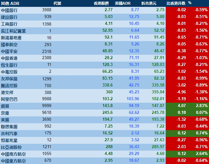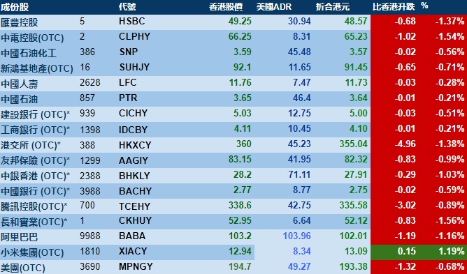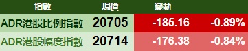 智通财经APP获悉,周三,美股三大指数集体收涨,港股ADR指数下跌,按比例计算,收报20705点,较香港收市跌185.16点或0.89%。
