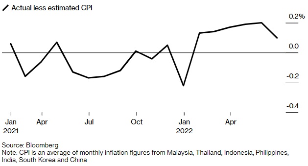 亚洲新兴市场的实际通胀率已经连续6个月超过经济学家预期