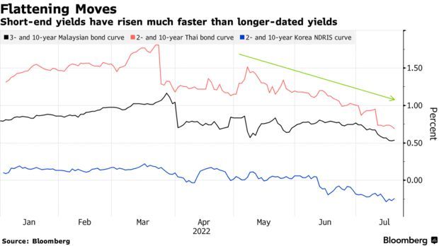 韩国、菲律宾和泰国最新公布的通胀数据均高于市场预期。上周,新加坡金融管理局(新加坡央行)和菲律宾央行都出人意料地宣布收紧货币政策。包括Kamakshya Trivedi在内的高盛集团策略师上周表示:“亚洲和美国之外的全球各大央行可能会继续努力抢占先机(收紧货币政策),因为美联储在7月会议上的鹰派立场可能会使美元继续走强。”
