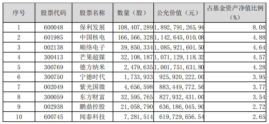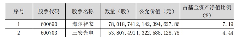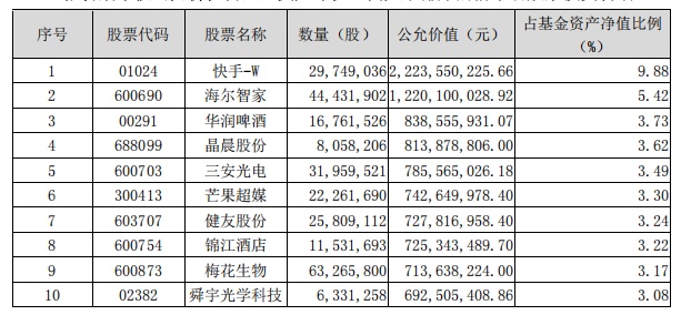 兴全合润混合前十大重仓股分别为:海尔智家、三安光电、闻泰科技、芒果超媒、锦江酒店、晶晨股份、健友股份、通威股份、梅花生物、顾家家居。