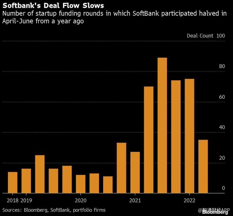 智通财经APP获悉,日本软银集团旗下愿景基金(Vision Fund)的投资数量在今年4月至6月期间减少了一半,原因是科技股估值疲软削弱了这家全球最大初创企业投资机构的风险偏好。