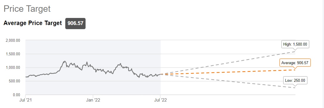 华尔街对于特斯拉股价走势仍持乐观态度,分析师们平均预测股价高达906美元。在特斯拉业绩公布后,金融机构CFRA Research火速将特斯拉目标价上调至1125美元,并大幅上调2022-2024年每股收益预期,并强调投资者应将重点放在2022年下半年破纪录的目标上,该机构重申对特斯拉的“强力买入”评级。