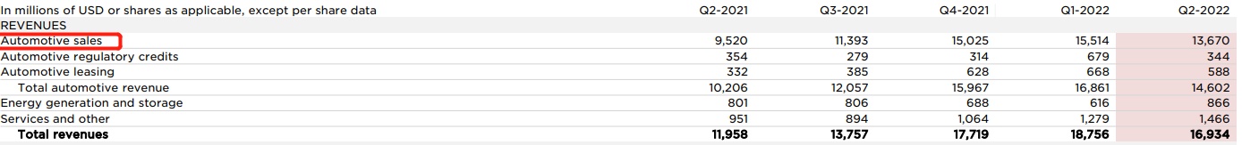 按细分业务来看,汽车业务仍然是拉动特斯拉营收增长的绝对主力,从过去几年的业绩更可看出汽车业务所占营收比例极大。Q2特斯拉汽车业务(销售+租赁+监管信贷)营收达到146.02亿美元,同比增长87%,占总营收近9成比例。在汽车业务之中,汽车销售占比最大,本季度达到136.7亿美元,然而该项指标1年来首度出现环比下滑,反映的是特斯拉交付量出现环比下降。