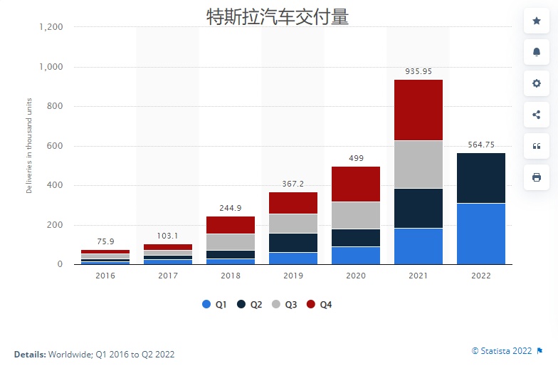 特斯拉Q2交付量为254,695辆,低于上季度创下的310,048辆这一历史记录,远低于华尔街预测的282,291辆,并且这一数字是华尔街数次下调之后的结果。这也反应出面临高通胀率、供应链难题以及新冠疫情等不利因素综合影响之下,即便强如特斯拉也难以置身事外。