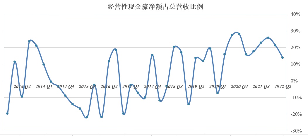 对于特斯拉这样的重资产造车企业来说,需要耗费大量支出维持日常经营以及产能爬坡,因此维持较高比例的经营现金流实属不易,加之特斯拉如今面临通胀压力及供应链中断,该比例自然难以维系在较高水平。这一比例越高,往往意味着企业有更多资金用于研发等支出,进而不断提高自身竞争力。
