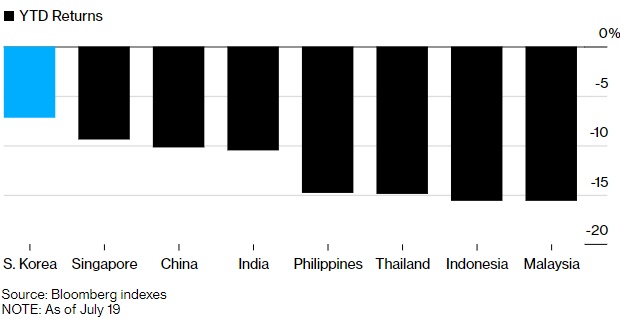亚洲国家中,韩国以美元计价的债券跌幅最小