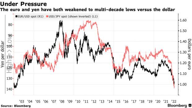 在美联储激进收紧货币政策和避险需求的共同推动下,美元指数在上周升至20年来高位,目前正徘徊在107下方。在美元走强的情况下,欧洲央行直到本周四才进行加息,而日本央行则坚持超宽松货币政策,这导致欧元和日元一直难以站稳脚跟。
