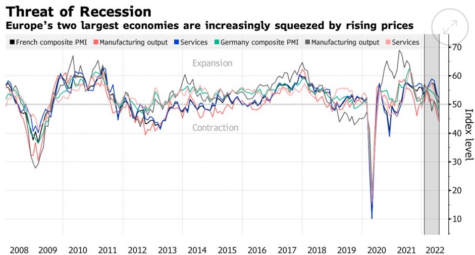 随着德国国内外需求下降,对未来的预期自疫情开始以来首次转为负面。这些数据强化了有关欧洲最大经济体将在2022年下半年陷入衰退的预测。
