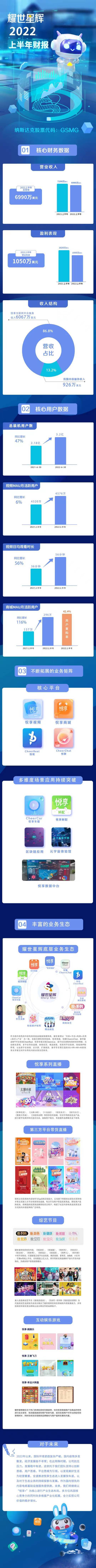 截至2022年上半年,耀世星辉总营收为6990万美元,去年同期总营收为7190万美元。