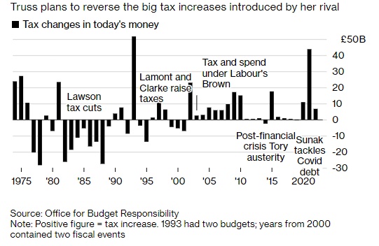 特拉斯承诺立即减少公司及个人所得税,这一措施可能会刺激经济,但也会推高通胀。经济学家表示,央行可能会采取加息作为回应。英国目前的利率已经处于2009年以来的最高点。