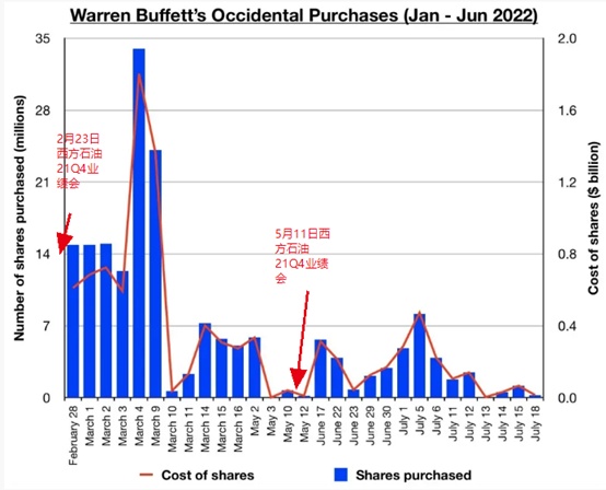 具体来说,西方石油首席执行官 Vicki Hollub 在2021年第四季度财报电话会中除了强调了西方石油强劲的业绩,主要强调了持续改善资产负债表的方针和新的股东回报框架。同时,如下图所见,巴菲特也用实际行动证明了对西方石油现任CEO的发展策略和派息计划的认同。值得一提的是,Hollub在2022年第一季度的业绩会中公布的战略是在2021年第四季度基础上做了延伸。