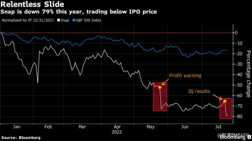 Snap周一收盘价为9.95美元,低于2017年17美元的IPO价格,这使得今年以来的总市值损失接近600亿美元。