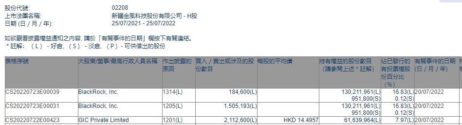 Limited减持金风科技(02208)211.26万股,每股作价14.4957港元,总金额约为3062.36万港元。减持后最新持股数目约为6164万股,最新持股比例为7.97%。