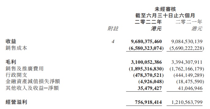 近日,维达国际(03331)发布2022年上半年业绩:期内该公司实现96.8亿元(单位:港元,下同),同比增长6.6%;净利润6.38亿元,同比降低34.1%。