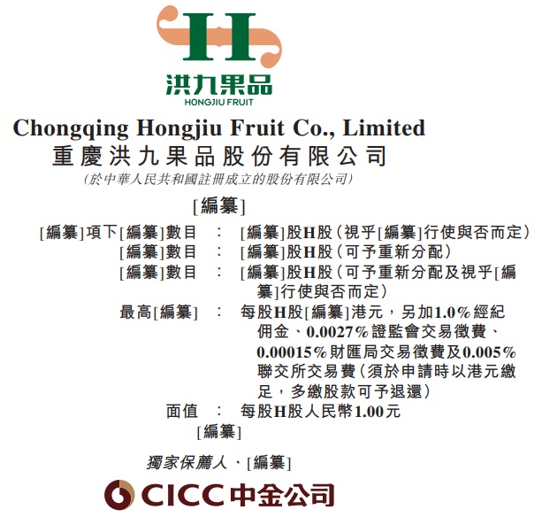 智通财经APP获悉,据港交所7月26日披露,重庆洪九果品股份有限公司过港交所主板上市聆讯,中金公司为独家保荐人。
