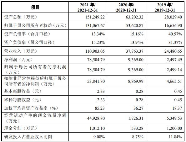 据中微半导招股书显示,于2019年、2020年、2021年截至12月31日止,公司营业收入分别约为2.45亿元、3.78亿元、11.09亿元。公司净利润分别约为2497.49万元、9369万元、7.85亿元。报告期内公司收入及净利润的持续增长主要是因为下游行业需求增长、公司产品布局持续完善及新产品逐渐获得客户认可。