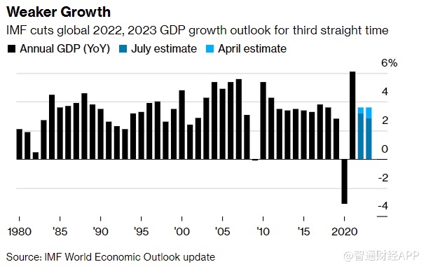 智通财经APP获悉,国际货币基金组织(IMF)今年第三次下调全球经济增长预期,并警告称,全球经济可能很快就会处于完全衰退的边缘。