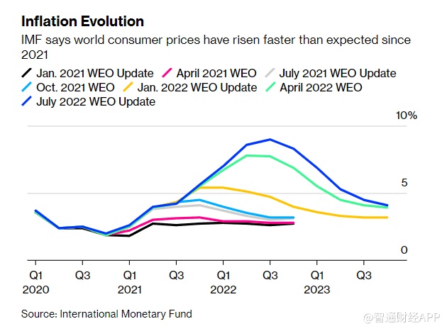 IMF表示,其在4月《世界经济展望》中概述的风险正在成为现实。这些危险包括俄乌冲突的恶化、对俄罗斯制裁的升级、新冠肺炎疫情再次爆发,以及迫使各大央行加息的通胀浪潮等。
